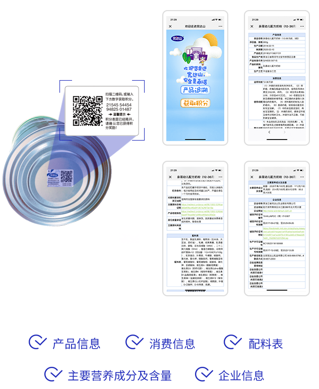 在市场上拿到任意一款完达山婴幼儿配方奶粉产品通过APP、微信以及打开完达山官网查询入口,
